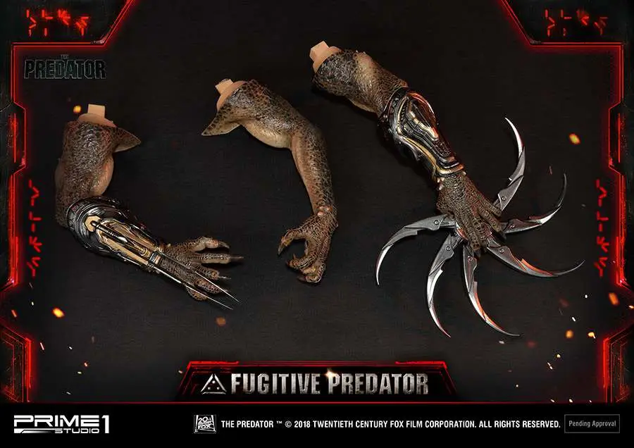 Prime 1 Studio is proud to present 1/4 scale PMTPR-01: Fugitive Predator from The Predator (2018 Film). Predators have been genetically evolving themselves to be stronger, smarter and more lethal than ever before. When a young boy accidentally activates a mysterious alien device and becomes the target of these enhanced Predators, only his father and the most unlikely ragtag band of crazy ex-military agents can save him – and the human race from obliteration. From Shane Black, the Director of Iron Man 3, comes the high-octane action thriller that takes the original 80’s cult classic to the next level.