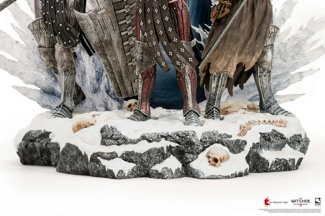 Immerse yourself in the captivating world of The Witcher 3: Wild Hunt with this meticulously crafted 1/6 scale diorama. This stunning piece captures Wild Hunt commander Eredin, in formation alongside Imlerith and Caranthir, all equipped with their signature armor and sculpted with precision to reflect their powerful positions in the ruthless Wild Hunt. A highly detailed portal looms behind them, connecting them to other worlds to continue their hunt, with an icy, war-torn base littered with the remains of their conquests. Edition Size: 2000