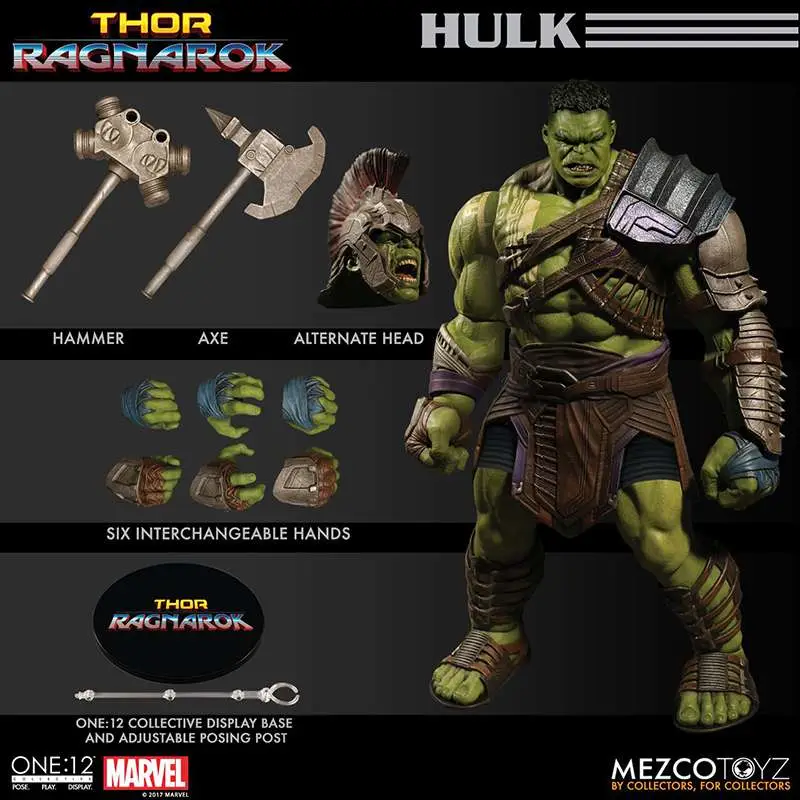 Each One:12 Collective Ragnarok Hulk figure is packaged in a collector friendly box, designed with collectors in mind there are no twist ties for easy in and out of package display.