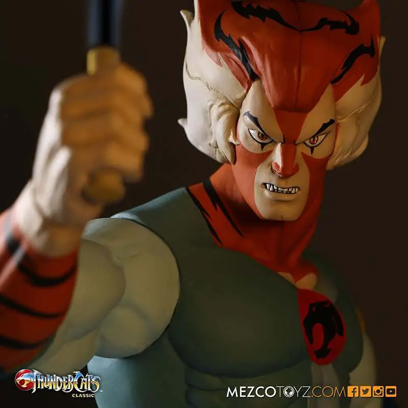 Featuring 9 points of articulation, Tygra expressively flexes his calculated feline ferocity. Sculpted with superb detail and and adherence to the classic television show’s source material this figure also includes his weapon of choice, the powerful Thundarian Bolo-Whip
