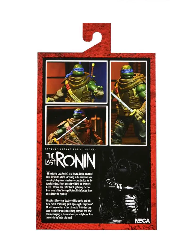 From the Teenage Mutant Ninja Turtles comic book series, The Last Ronin! In a future NYC far different than the one we know today; a lone surviving Turtle goes on a seemingly hopeless mission to obtain justice for his fallen family and friends. Based on issue #3 of the comic, the Leonardo figure stands in 7” scale with over 20 points of articulation, and includes two interchangeable head sculpts, interchangeable hands, katanas, and five throwing knives that fit into the figure’s belt. Comes in collector-friendly window box packaging with opening flap featuring a custom illustration by The Last Ronin artist Ben Bishop.