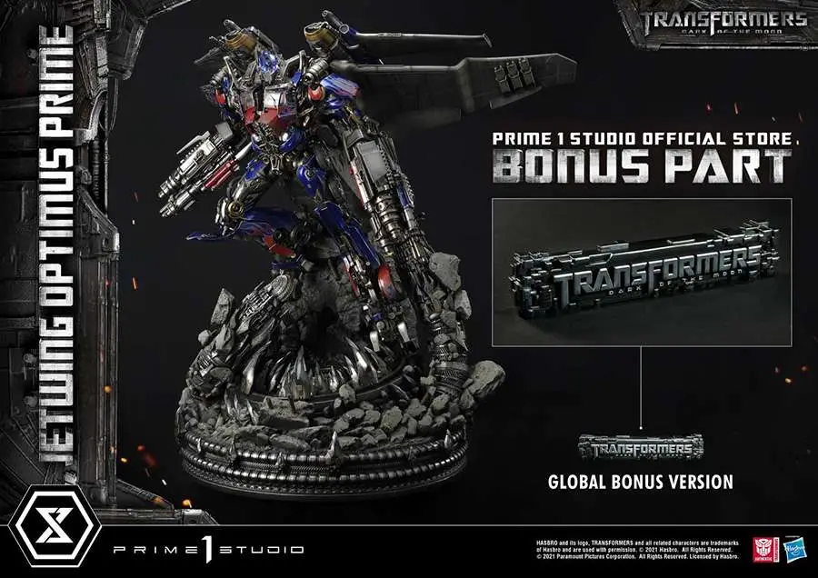 And for the Bonus Versions of this first-of-its-kind statue, we are offering Bonus Transformers Logo Plates to display with your Jetwing Optimus Prime! The Global Bonus Version features the Transformers logo in English.