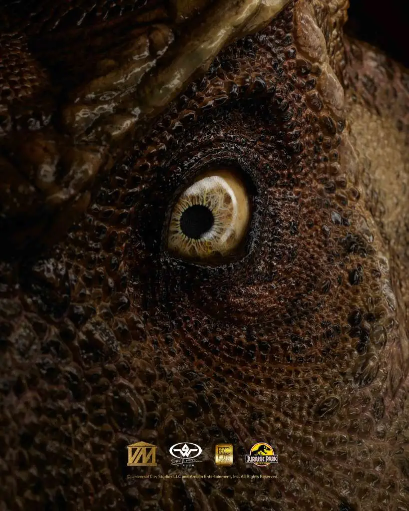 Elite Creature Collectibles is proud to present a 1/2 Scale Tyrannosaurus rex Head Prop reproduction from Jurassic Park (1993) in collaboration with Stan Winston Studio. In addition to an army of artists and technical wizards, the original Jurassic Park T.rex team at Stan Winston Studio included lead sculptor Mike Trcic, paint scheme designer John Rosengrant, and key teeth and eye artist Rob Hinderstein. With great support from Greg Nicotero, the ECC team had hands-on access to one of the original Jurassic Park film props for high-resolution 3D scanning. With this information, as well as extensive archival reference material courtesy of the Stan Winston Studio Archives, ILM key artist Bitan crafted a faithful recreation of the original character from the film, while ECC key artists Miyo Nakamura and Miranda Jory painstakingly matched the T.rex’s iconic paint scheme.