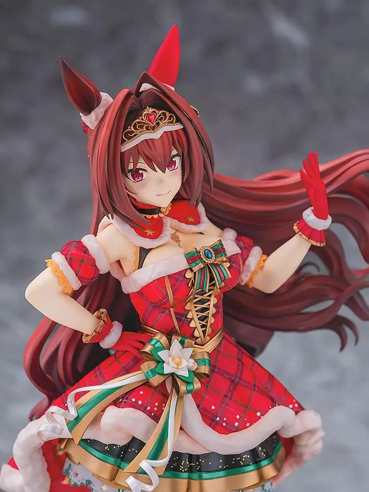 Details of the outfit, from the crimson plaid print adorned with gold and green accents to the frills and ribbons, have been precisely recreated. The sequins also add a luxurious touch of glamour to complete the figure. Other visual highlights include Daiwa Scarlet's dynamically sculpted hair, which has been decorated with pearls for a special touch. The unique Christmas motif base also adds to the festive atmosphere of the figure.