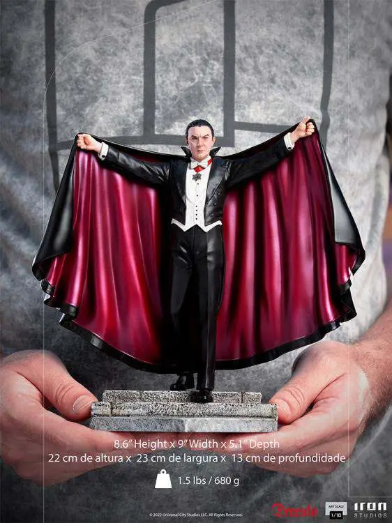 From the iconic Universal Monsters movie dated 1931, Dracula, comes a 1/10 Art Scale limited edition statue of Bela Lugosi as Dracula. The statue, Highly detailed and Hand painted, stands over 8 inches tall and features Dracula with his cape opened wide.