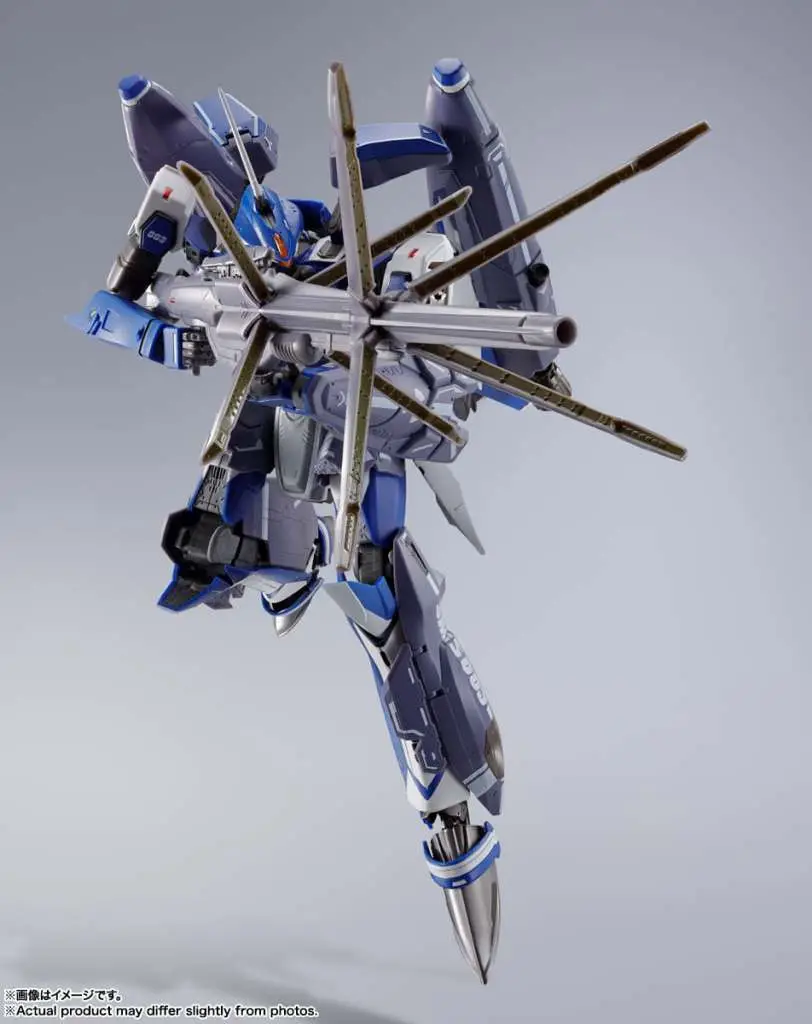 Pour les fans de Macross Frontier voici la Revival Edition de pilote Michael Blanc : VF-25G SUPER MESSIAH VALKYRIE! Le set comprend : , Super Parts set, Three pairs of optional hands, Sniper rifle, Anchors (x2), Assault knife, Michael Blanc figure, Klan Klang small figure, Stand.