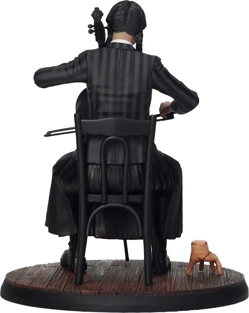 Cette figurine capture une scène magique où Mercredi interprète magistralement la chanson «Paint it Black» des Rolling Stones avec son violoncelle depuis son balcon, enveloppée dans l'atmosphère mystérieuse où l'on observe tous les événements qui l'entourent.