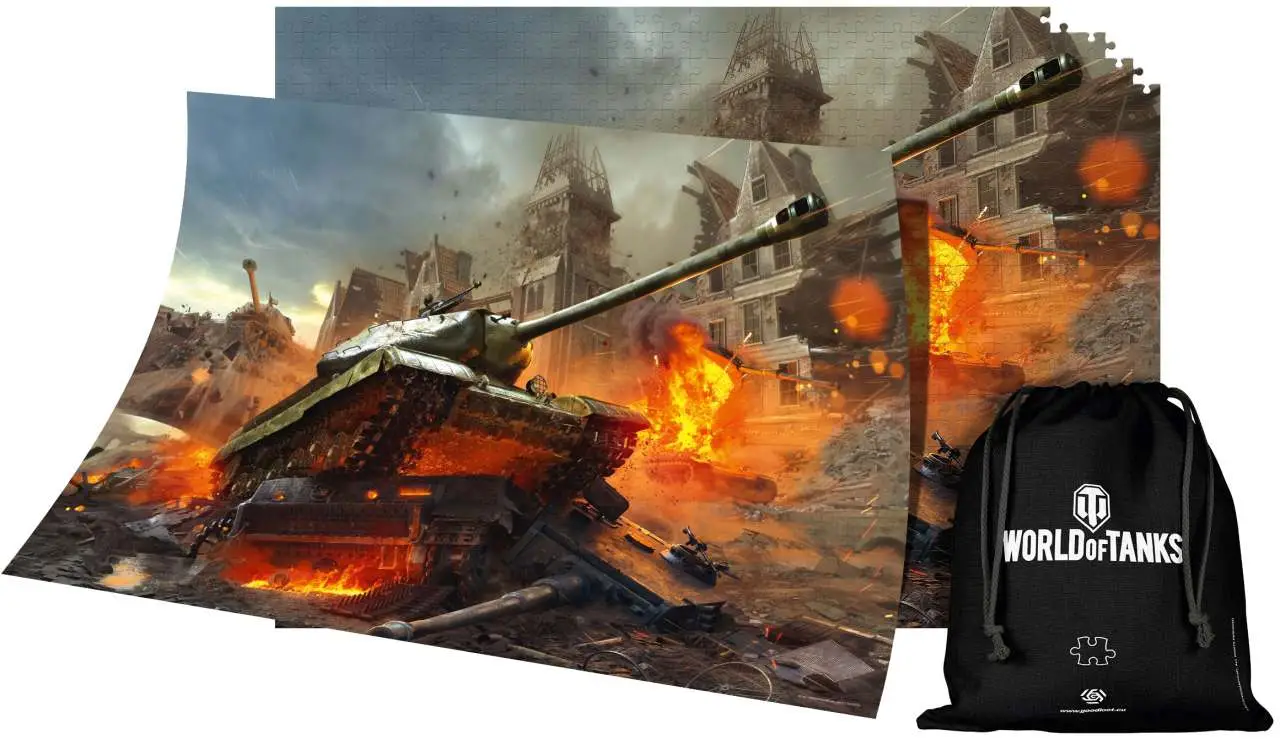 Un puzzle exceptionnel de 1000 pièces de la plus haute qualité, d'une taille finale de 68,3 x 48 centimètres, contenu dans une belle boîte cadeau avec un recouvrement laminé. L'emballage comprend également un poster en papier glacé et un sac en tissu décoré du logo du jeu pour contenir les pièces du puzzle.