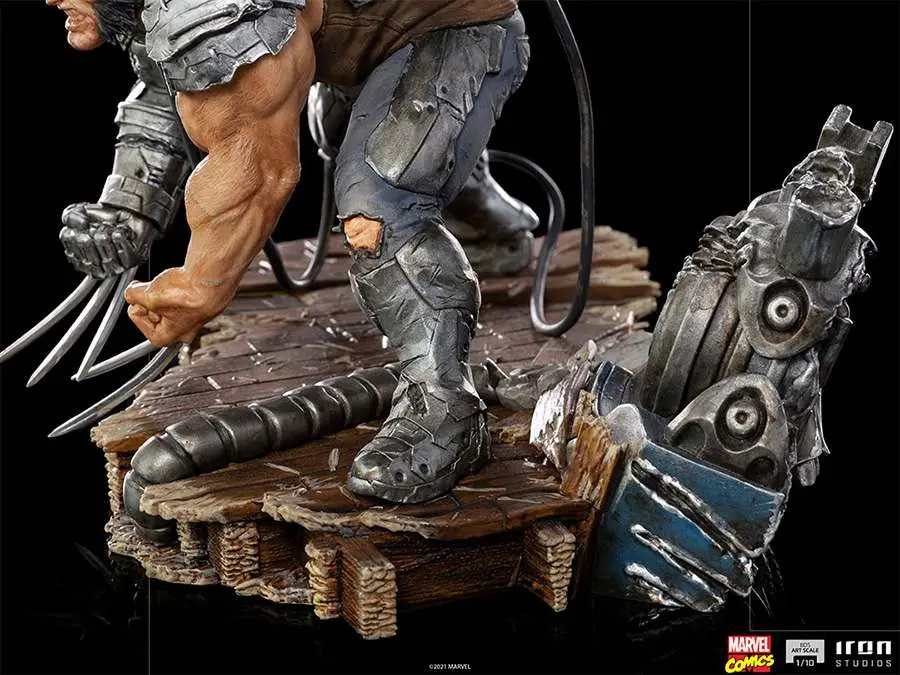On the wooden foundation of the remains of Mansion X, an automaton replicated from the wild Canadian mutant named Logan unsheathes its claws from its fists and prepares its reconstructed half-machine and half-man body for imminent combat. On his back, a seemingly harmless little girl in a pink dress uses her advanced intellect to direct her counterpart, friend and ally, to join the group of mutant heroes X-Men against the gigantic Sentinel robots controlled by Magneto, and their allies of the Mutant Brotherhood. Thus, Iron Studios presents its statue "Albert and Elsie-Dee - X-Men - BDS Art Scale 1/10" with the unusual android allies of Wolverine and the X-Men.