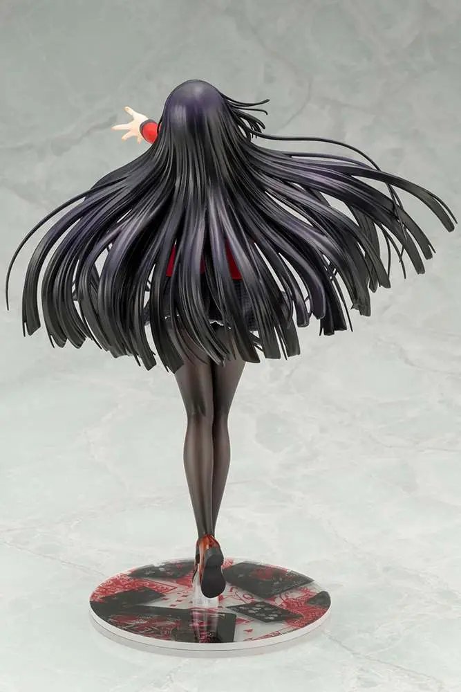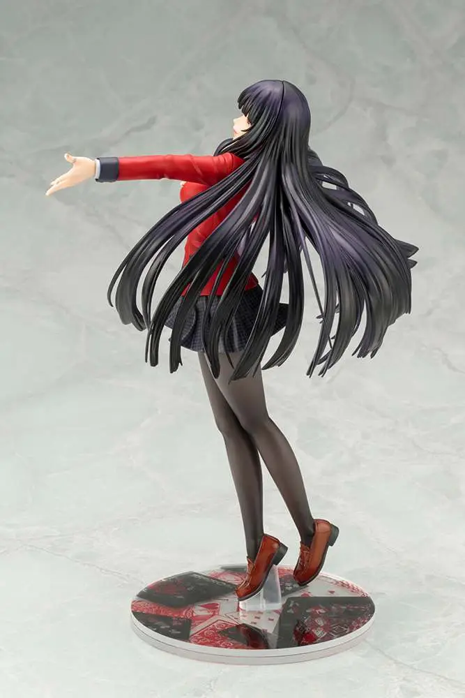 Next up in Kotobukiya’s ARTFX J Series is the main character of Kakegurui – Compulsive Gambler, Yumeko Jabami! The adrenaline-packed anime takes place at Hyakkaou Private Academy, a school with an exceptionally unique hierarchy system that forces its wealthy students to gamble their fates in order to maintain their social standing.Yumeko is posed with her hands reaching outwards and an expression of ecstasy on her face as she is enveloped by the thrill of gambling.