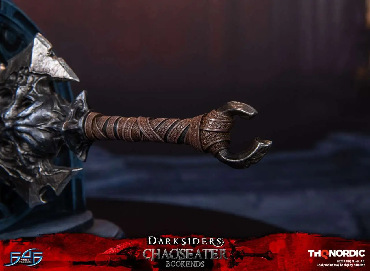 First 4 Figures trasforma la mitica spada Chaoseater, celebre arma della saga videoludica Darksiders, in un fantatsico oggetto d'arredamento...un fermalibri perfetto per la vostra casa o la vostra stanza...che siano libri, Dvd o videogame...non potete farne a meno!