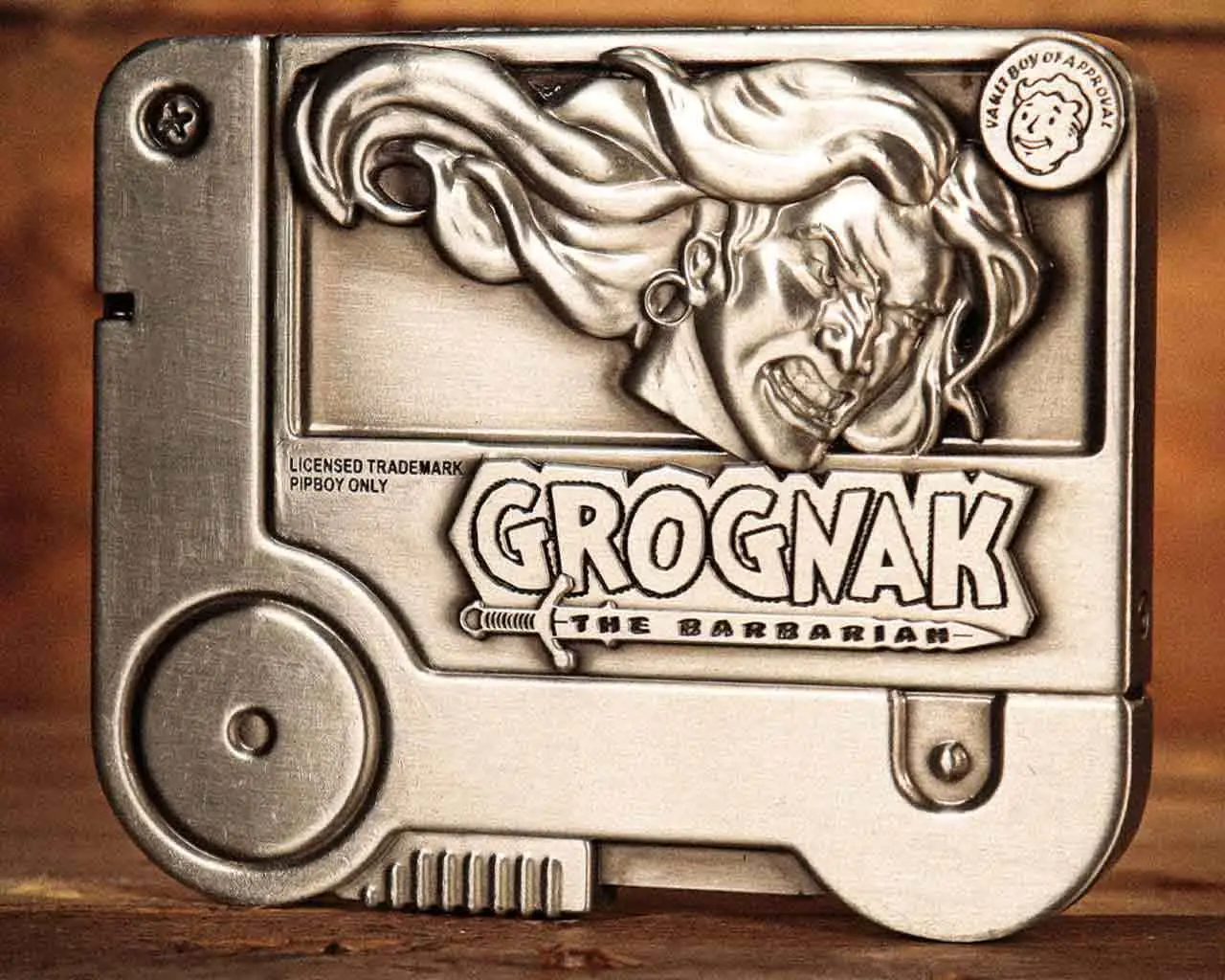 Direttamente dalle pagine dei fumetti prebellici di Grognak the Barbarian, quest' holotape da collezione in edizione limitata ti permette di brandire il potere dell’eroe definitivo armato di ascia… senza attirare un’orda di ghoul ferali. Ispirata al gioco di ruolo per il Pip-Boy approvato da Vault-Tec, Grognak and the Ruby Ruins, questa replica di Holotape presenta un design con rilievi marcati e dettagli su entrambi i lati, creata per i Vault Dweller che cercano sempre un pizzico di divertimento in più.