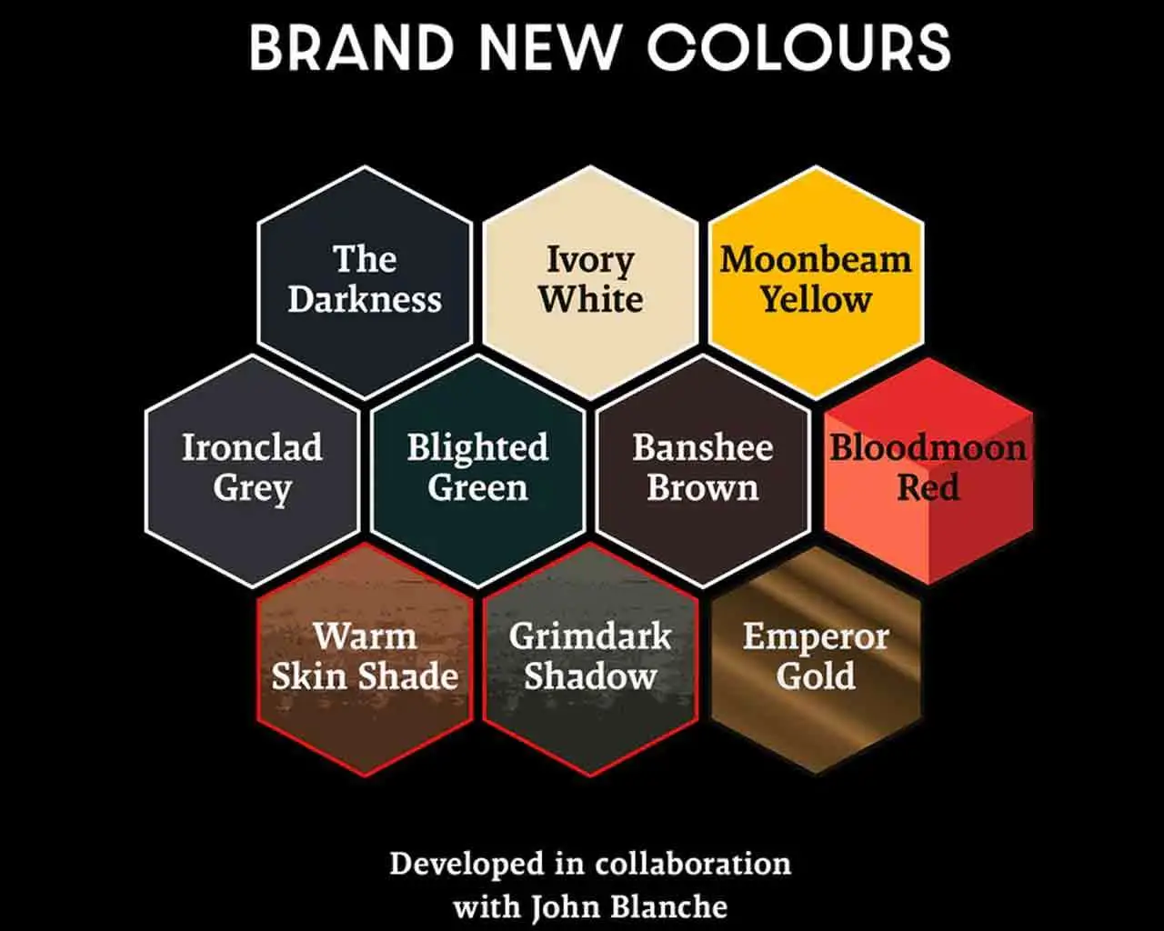 10 nuovi colori sviluppati personalmente con John Blanche per ispirare gli hobbisti a padroneggiare il suo iconico stile artistico gotico, bizzarro ma amato.