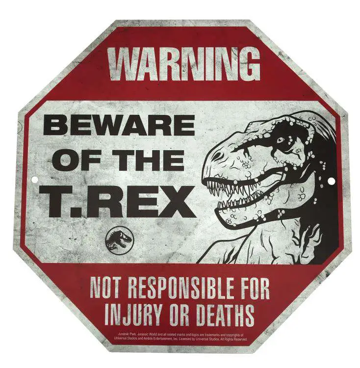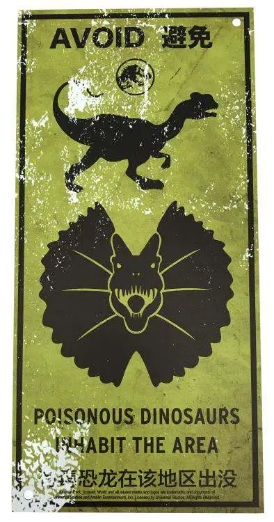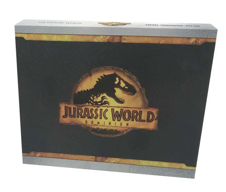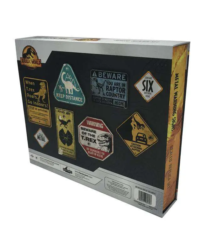 stupendo set di repliche in metallo per le targhe segnaletiche viste nel film Jurassic world.