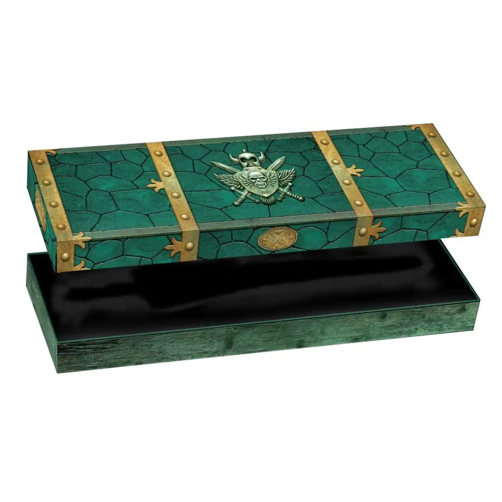 Questa chiccha misura un metro, in acciaio, con rifiniture cromate super-lucide ed un nastro in pelle che avvolge l'impugnatura. Il tutto proposto in scatola deluxe decorata a tema.